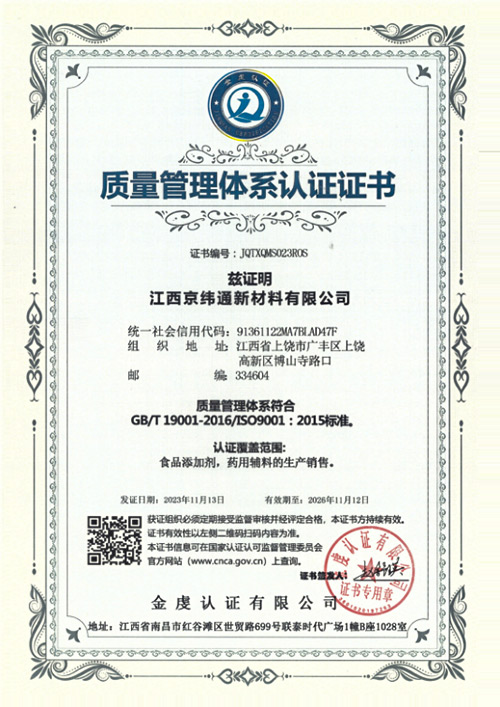 江西京纬通新材料有限公司坐落在风景秀丽的江西省上饶市广丰区上饶高新区博山寺路口,交通便利,是一家专业的药用辅料和食品添加剂生产企业。